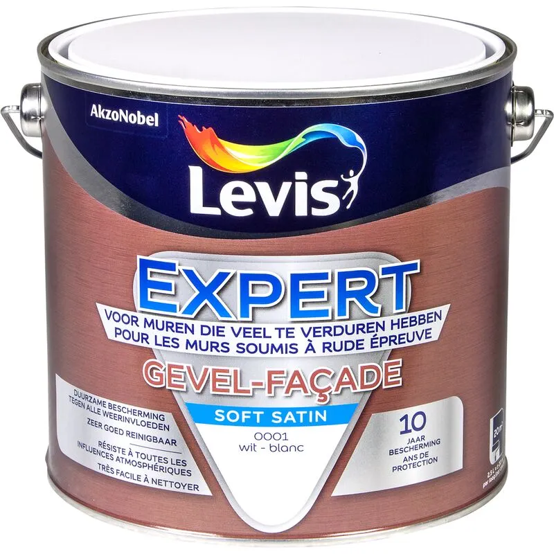 Peinture Levis Expert Façade Blanc Soft Satin 2,5L – Blanc