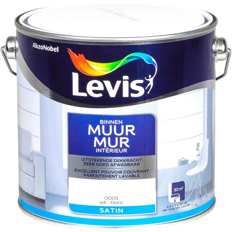 Peinture Murale Levis Mur Intérieur Blanc Satin 2,5L – Blanc